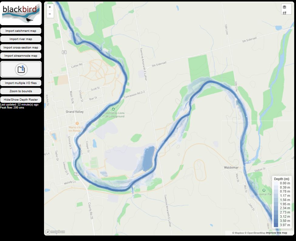 From hydrologic streamflow forecasts to inundation extents with Blackbird, we build real-time displays for data, model results, and use our own in-house servers to deliver them at low cost. See our Waldemar Live Demo for a Blackbird display and the Liard RavenView demos.
